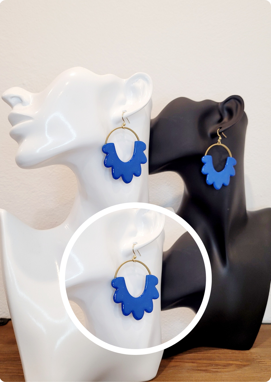 Modernes Design trifft auf die Schönheit des Morgens. Die Ohrringe kombinieren die faszinierenden Farben eines Sonnenaufgangs mit stilvollen Metallaccessoires und schaffen so einen inspirierenden Blickfang.