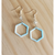 Hexagon-Chic in Himmelblau und Keramikweiss. Diese Ohrringe sind eine frische und elegante Ergänzung für jeden Look. Ein moderner Blickfang, der Leichtigkeit und Eleganz ausstrahlt.